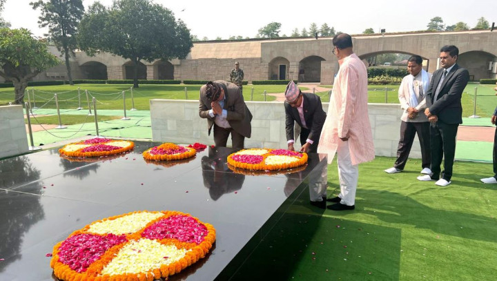 मुख्यमन्त्री शाहद्वारा गान्धीको समाधिमा माल्यार्पण