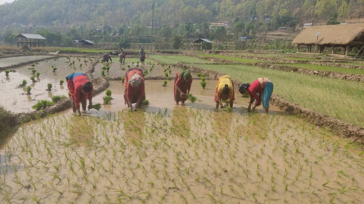 चैते धान रोप्न व्यस्त दाङका किसान